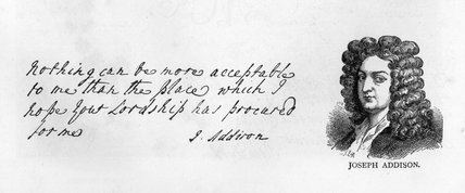 Checking her procedure, I too googled for “Joseph Addison” and “handwriting”, and came across a website that sells images of famous authors with a specimen of their handwriting.