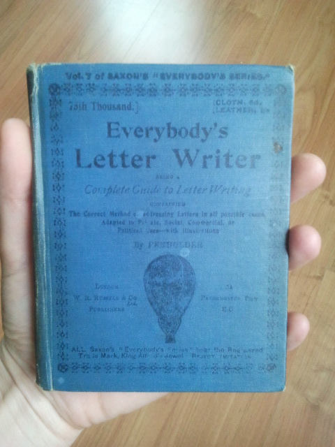 Today I received a surprise package in my mail! Of course, I remembered ordering a copy of Penholder’s Everybody’s Letter Writer: being a Complete Guide to Letter Writing, but the website (abebooks.com) had told me that it would take 10 to 14 business days. Apparently they can also do it in three.