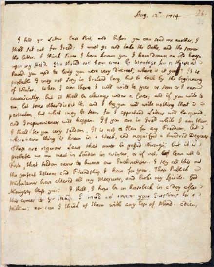 Having said this, Jonathan Swift had popped up in my search for a poet with a need for correspondence (as far as one can assume that it was necessary to him). I found a letter of correspondence between him and a woman named ‘Vanessa’. The letter looks like Swift is declaring his love to her, but seems to be too far away to be with her. It is quite interesting to see how he uses his words, knowing him as the writer of books and poetry.
